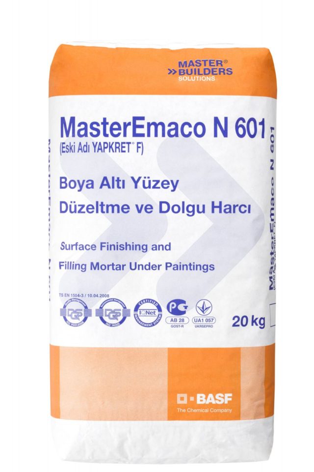 MasterEmaco N 601, çimento esaslı, tek bileşenli, polimer takviyeli, yüksek stabiliteye sahip yüzey düzeltme ve dolgu harcıdır.