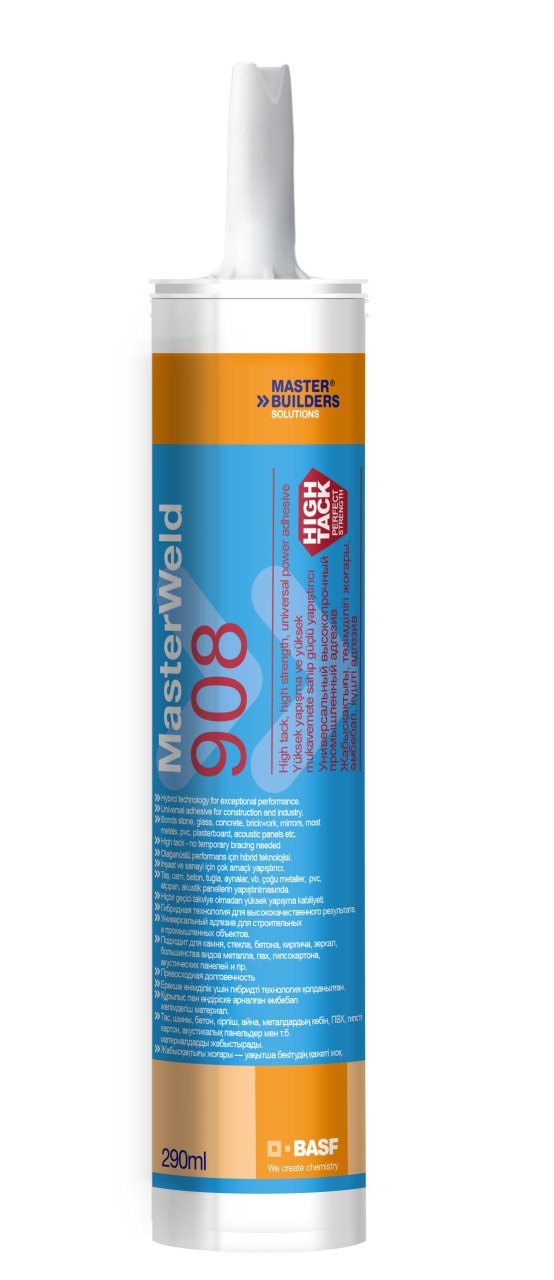 MasterWeld 908, MS polimer esaslı, tek bileşenli, çok amaçlı kullanılabilen, yüksek yapışma ve yüksek mukavemete sahip güçlü yapıştırıcı. MasterWeld 908 ağır yapı malzemelerinin yapıştırılarak sabitlenmesini sağlar.