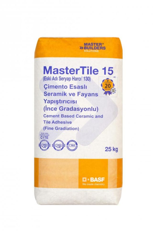 MasterTile 15, çimento esaslı, fayans ve seramik yapıştırılmasında kullanılan, yüksek stabiliteye sahip yapıştırıcı.